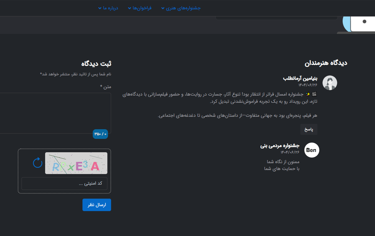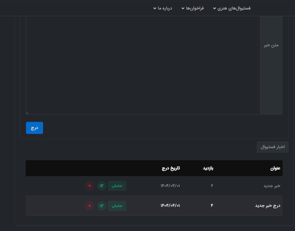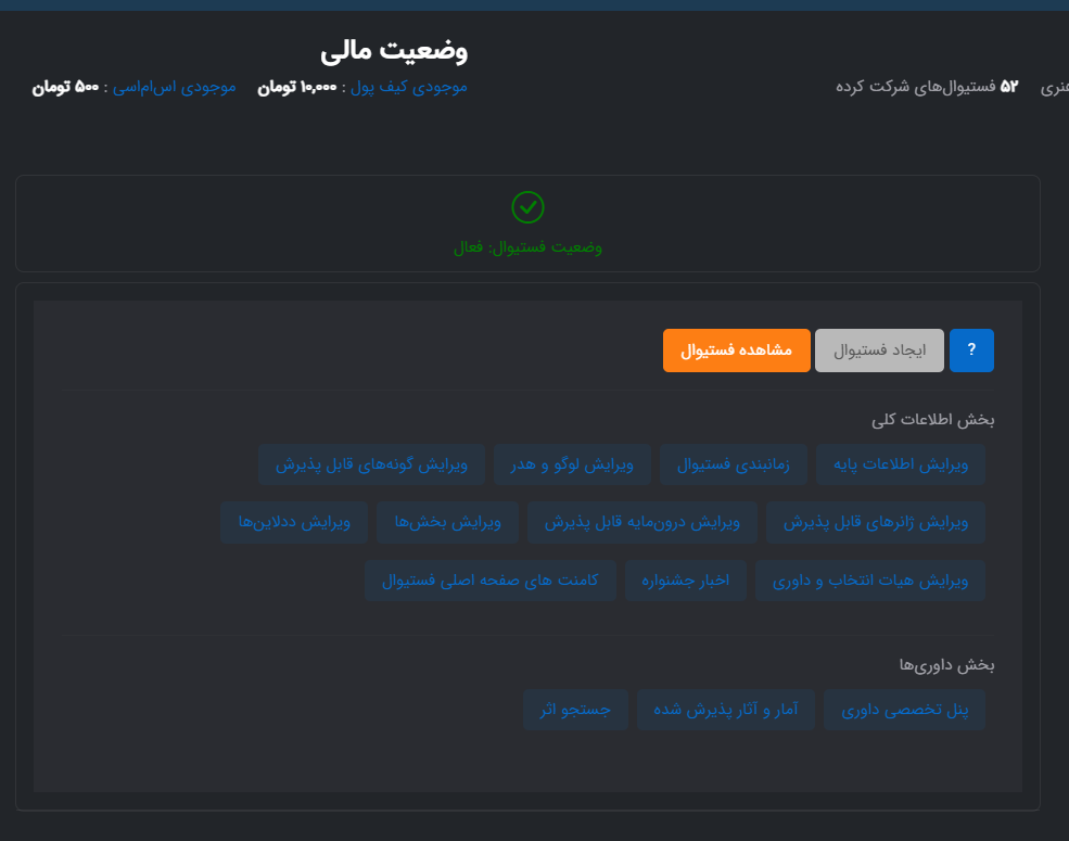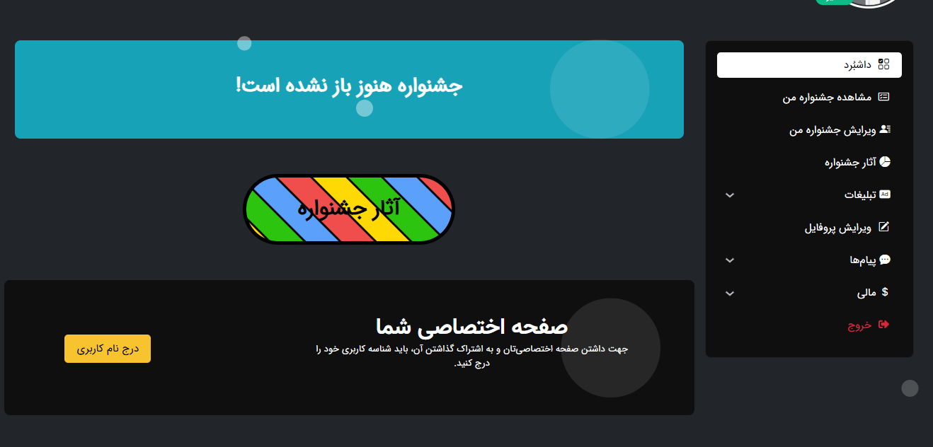 هر جشنواره، دارای صفحه اختصاصی خود خواهد بود که بصورت نامحدود همیشه دردسترس و نیز قابلیت پوشش اخبار جشنواره را خواهد داشت
